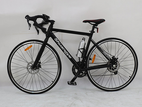 Shuangye 700C best off road electric bike, fashion design, lightweight alloy frame, lithium battery hide in frame, looks like a Ordinary bicycle, shimano 2*9 speed, front & rear dual disc brake, cool road bike handlebar, large screen multifunction LCD display.